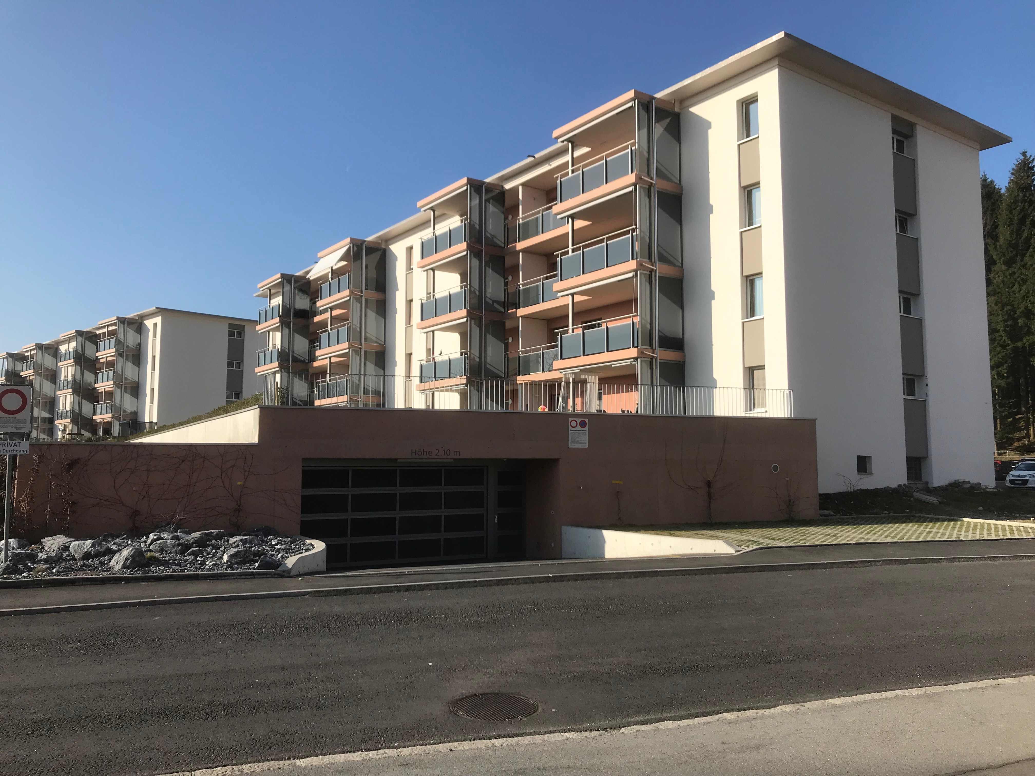 2016 erstellte die WBG auf dem Grundstück eine Einstellhalle mit 32 Plätzen. Gleichzeitig wurden die Balkone der beiden Häuser vergrössert.